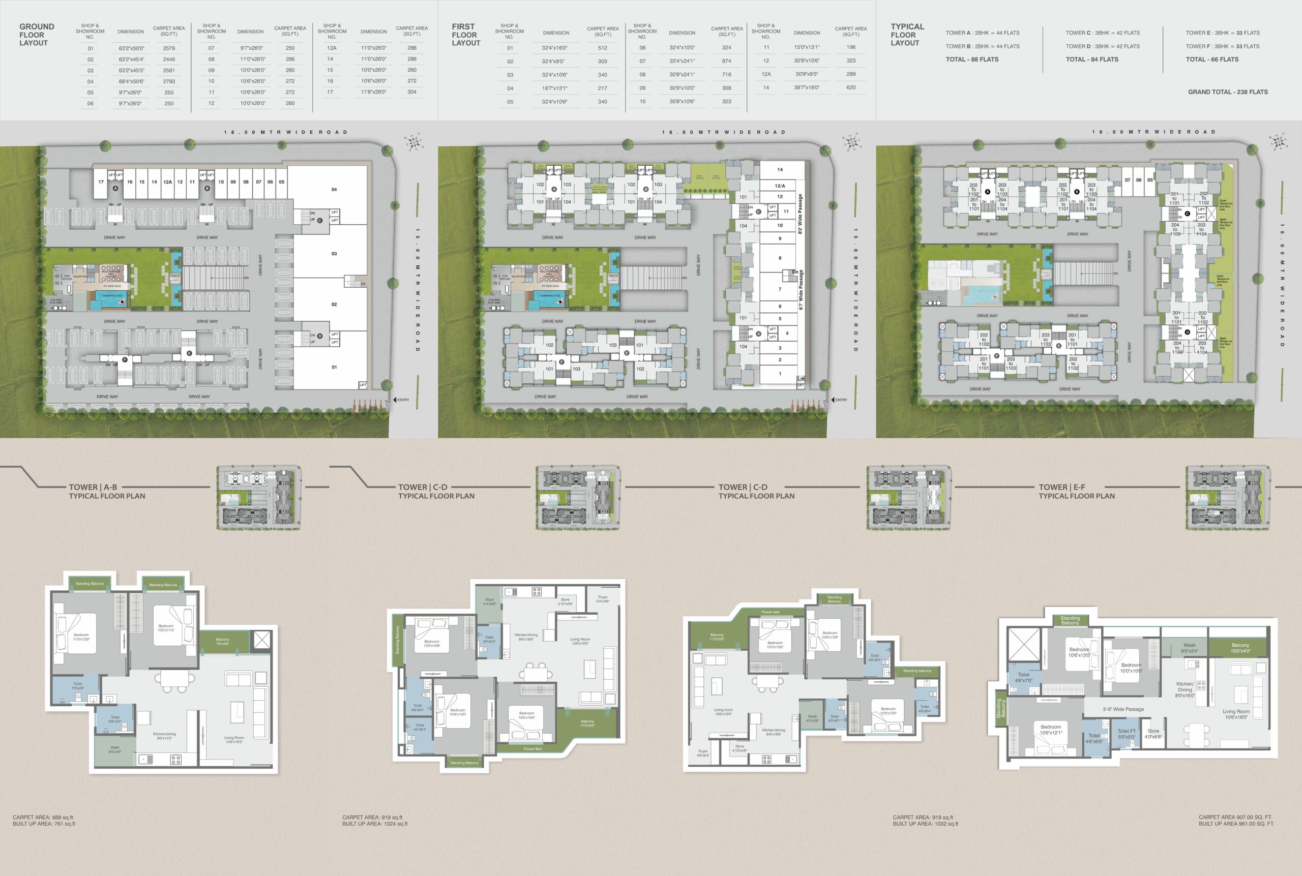 - Type: 2 and 3BHK flats with shops and showrooms